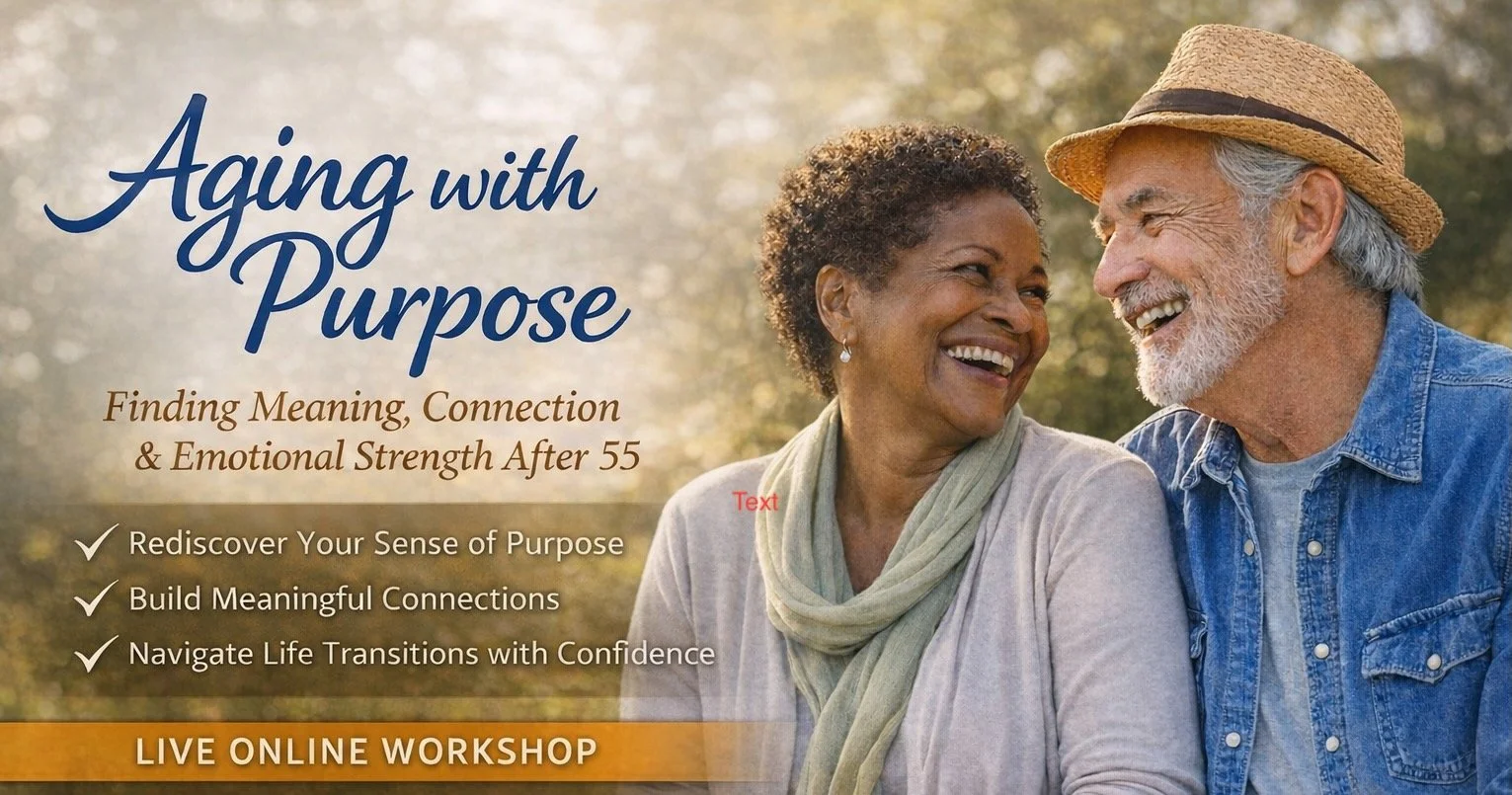 Join me online for a fun and inspiring workshop all about embracing life after 55! Discover easy ways to rediscover your sense of purpose, build meaningful connections and navigate life transitions with confidence. Whether you're looking to stay positive, connect with others, or simply feel more fulfilled, this event is for you. Let's celebrate growing older with joy and meaning together.